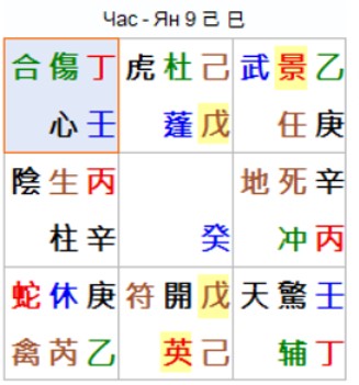 вот совершенно свежий очень красивый оракул на событие - человек получил предложение поучавствовать в бизнесе связанном с инвестиционным строителем в качестве посредника. Расклад Ян 9, в час Джи\Сы. День Цзя\Ву, месяц Цзя\Инь, ну и год Ву\Сюй Смотрите какая красота - ци течет от Ву к Шенг Мен на стороне сезона, дальше по идее должна течь к Джи как предмету вопроса, и тут же Ву на ЗТ. Во дворце с Ву собралась вся поддержка - и Тай суй и месяц. Смотрим на Йонг Шен спрашивающего - тут нужно покрутить, либо берем Цзя\Ву как Синь, либо ищем синхрон индивидуально. Я все таки склоняюсь к дворцу Кань, потому что он лучше описывает суть вопроса и личность спрашивающего - это руководитель фирмы. Хотя Дуй нужно проанализировать как второй слой - там Смерть и 9 земель - тоже синхрон с планированием, рытьем земли. То есть можно сразу провертить синхрон кто спрашивает и смотреть отзыв таблицы. Сам проект стремный по дворцу Ли. Если коротко то мой прогноз был таков, чтобы получить от этого проекта деньги участник должен быть высокого уровня. Там действительно связано с правительством это дело. Маленькому человеку делать нечего в этой таблице. Конкуренты будут дышать нос в нос практически, таблица им дает больше преимущества, но они чем то связаны, либо слишком расслаблены и самоуверены. Нужно их очень тщательно изучить, они в более благоприятных отношениях с предметом вопроса, победа возможна если задействовать дворец Чжень и Шунь (в месяц Дракона).