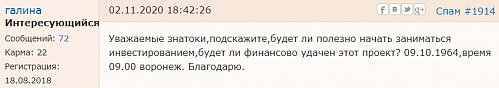 В Воронеже время московское, так что смотрим время мск. А на этот час расклад показывает, что прибыль может быть высокой, но найдётся кто-то, кто будет её подворовывать. Вы одна собираетесь инвестировать или с партнёром?