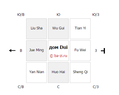 я не об этом. У дома 8 дворцов (без центрального) смотрят на 8 сторон света, у каждой из них свой уклон - повышение в гору или понижение в низину. Вот это мне надо, чтобы определить в каждом из этих 8 дворцов горную и водную звёзды. От этого и будем смотреть влияние на ситуацию, здоровье и определять текущее (год+месяц) влияние ЛЗ.